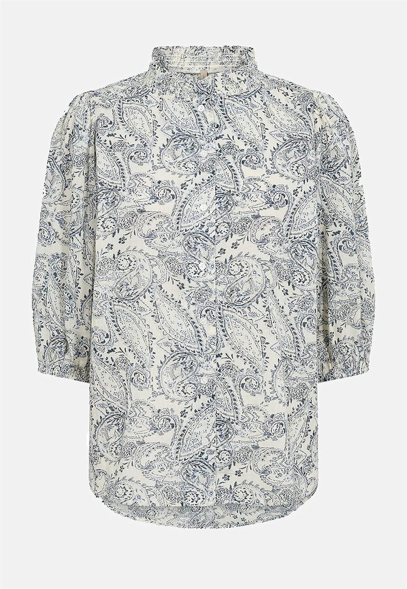 SC-Naia chiffongblus från Soyaconcept. • Blus med rundhals och volanger fram. • Modell i transparent vävd chiffong. • Knäppkant med blanka knappar. • Lång ärm med knappslå med ärmslut. • Lätt rundad nederkant. Längd från axeln ca 69 cm i storlek S (38).