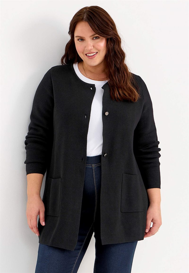 Milly trikåtopp. • Härligt mjuk, följsam kvalitet • Lös passform med bred mudd nedtill och knappdekor • Rundad hals • Långa ärmar med volym • Breda muddar vid ärmsluten • Längden följer storleken ca 70-80 cm från axeln.