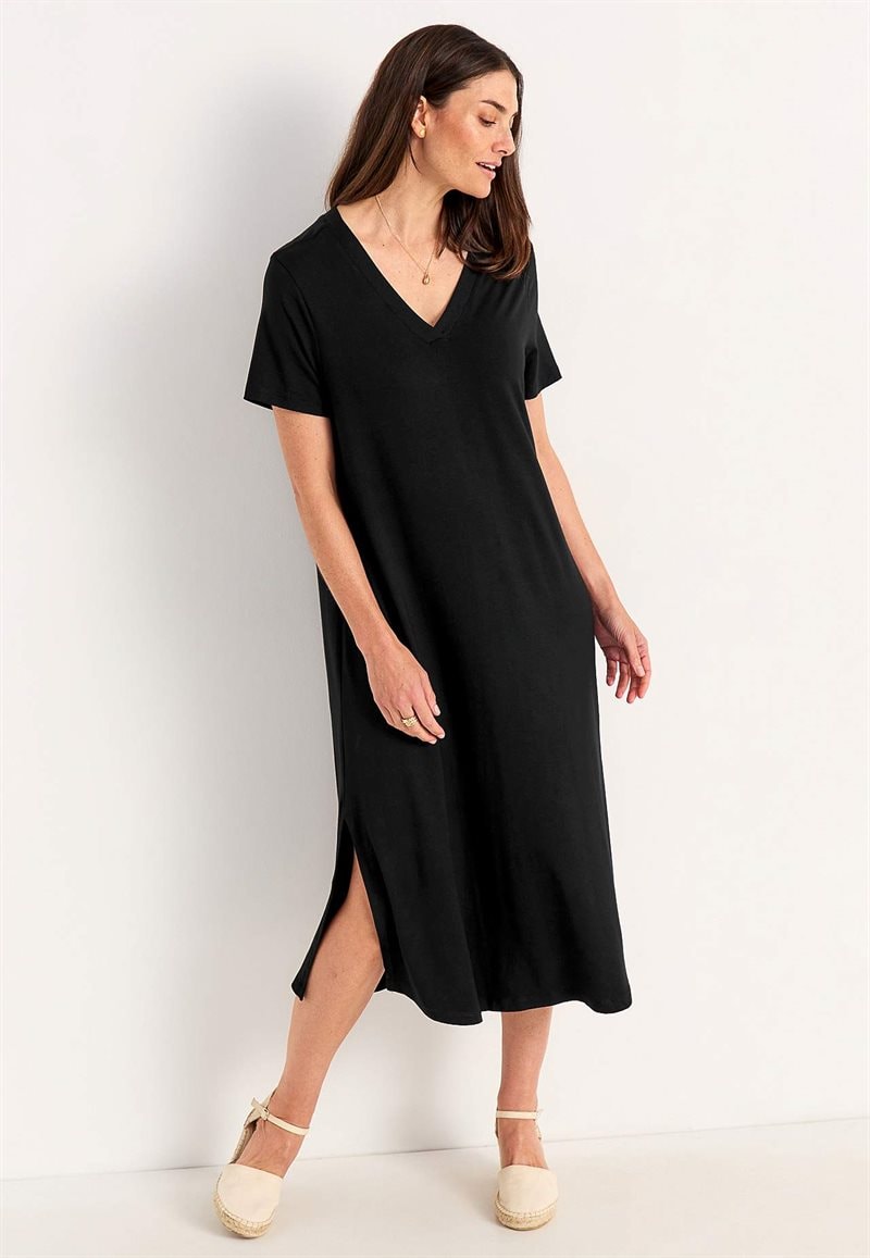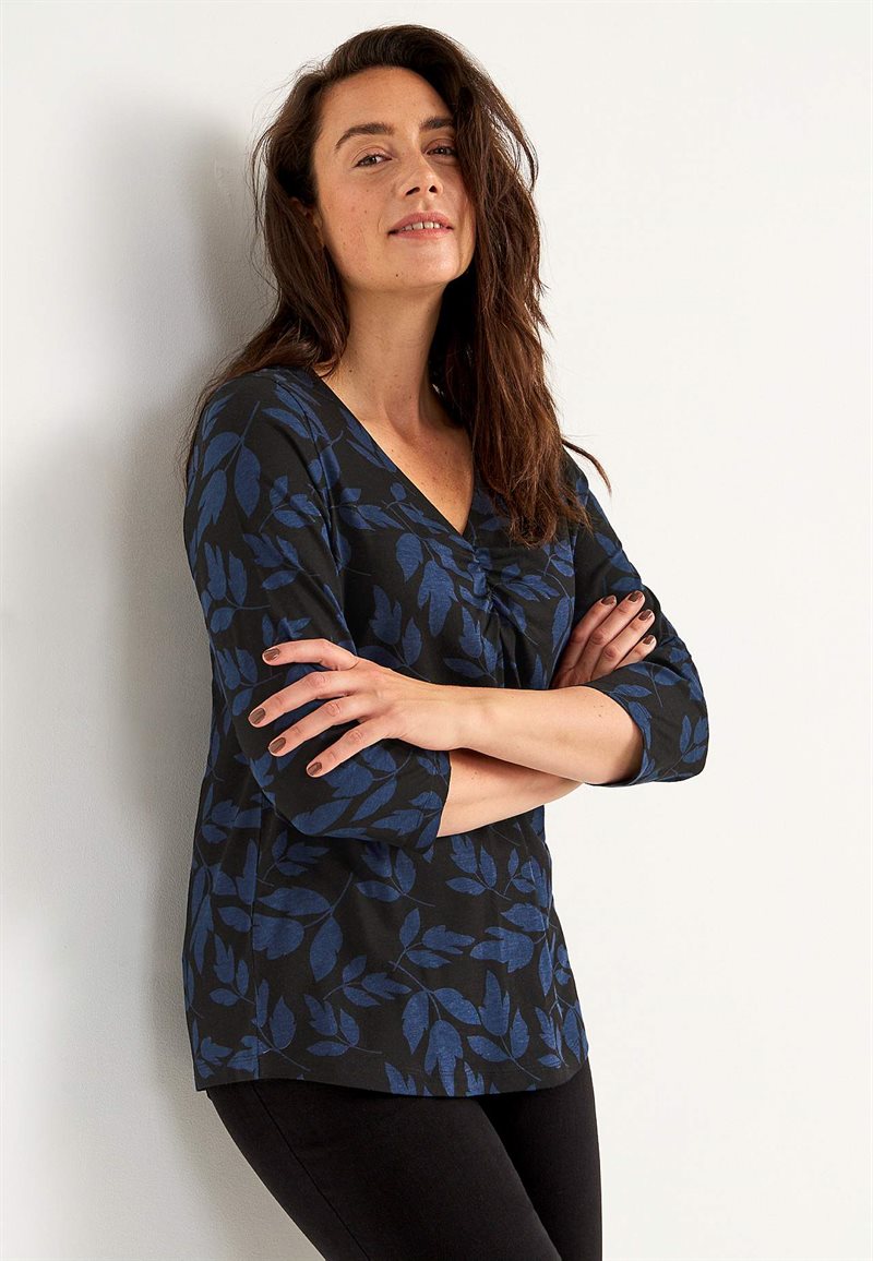 • Lätt a-linjeformad passform. • Tunika med strukturmönstrat, vävt material. • V-ringad hals med knappar. • Insnitt vid bysten. • Långa ärmar med manschett och två knappar i ärmsluten. • Rundad nederkant. • Längden följer storleken ca 80-95 cm från axeln. LENZING™ ECOVERO™-fibrer tillverkas med minst 50 % mindre koldioxidutsläpp och vattenförbrukning jämfört med generisk viskos. Fibrerna är gjorda av kontrollerade eller certifierade träkällor. Fibrerna ger naturlig mjukhet och drapering.