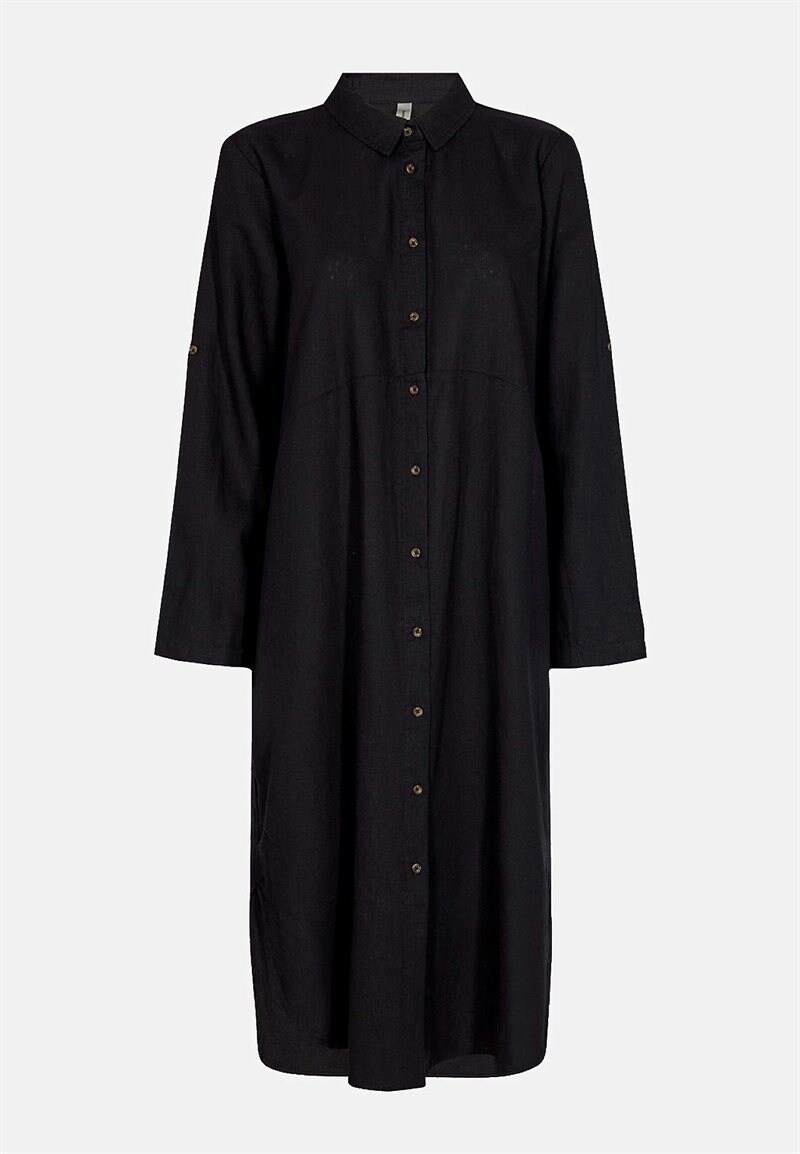 Ina klänning från Soyaconcept. • Vävd skjortklänning i mjuk linnemix. • Genomknäppt design. • Insnitt vid bysten. • Långa, vida ärmar med knapp och slejf. • Ok med veck baktill. • Rundad nederkant något längre baktill med slits i sidorna. • Lika fin att bära öppen som stängd. • Längd från axeln ca 113 cm i storlek S (38).