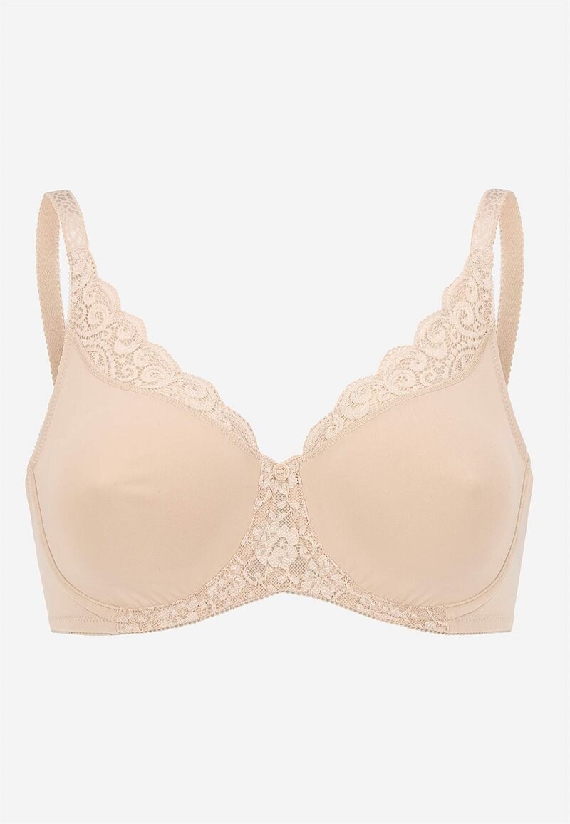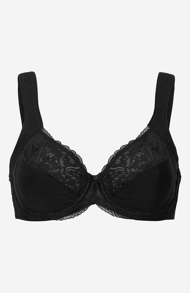 Sport-bh som passar för högintensiv träning från Triumphs serie ”Triaction Control Lite”. Den här sköna sportbehån som andas är tillverkad i innovativt ”Dynamic Light®” material med tre skikt som skyddar bröstvävnaden och ger bysten bra stöd i alla riktningar. Dessutom har den 3D-powerstretch med ”extreme bounce-control” extrem studskontroll som då passar bra för högintensiv träning med många hopp. Detta är också vetenskapligt bevisat enligt en test av ett forskarlag för idrott och rörelse vid universitetet i Portsmouth. Det stretchiga materialet ger också en härlig rörelsefrihet och har särskilda fuktighetsreglerande zoner. Minimizer-kuporna har ingen vaddering men gör så att bysten ser upp till en kupstorlek mindre ut. Den patenterade formande bygeln anpassar sig efter kroppens rörelse och bandet under bysten varken klämmer eller skär in i huden. Axelbanden är behagligt breda, ergonomiskt utförda och vadderade. Naturligtvis är de också reglerbara plus att de kan bäras korslagda. Bred och mjukt vadderad hysk/hak-knäppning med tre lägen bak. Nickelfri.
