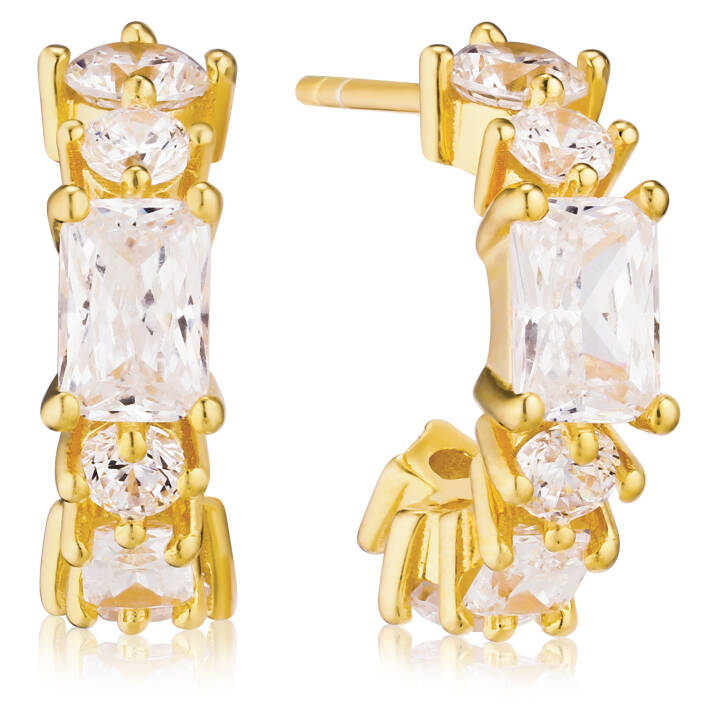 Ring av 18 karat guldpläterad 925 Sterling silver, polerad yta och vita hand placerade skurna zirconia stenar. Från Danska Sif Jakobs.